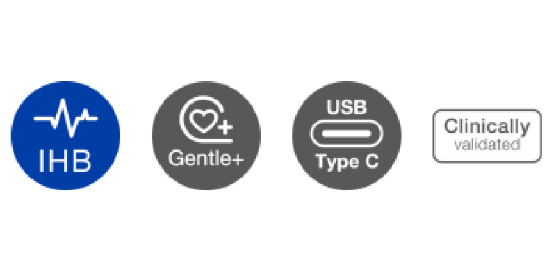 - Τεχνολογία IHB: αναλύει τη συχνότητα παλμών και ανιχνεύει ακανόνιστο καρδιακό ρυθμό κατά τη μέτρηση της αρτηριακής πίεσης