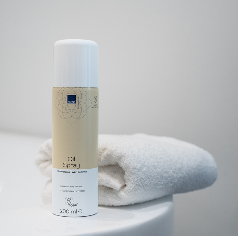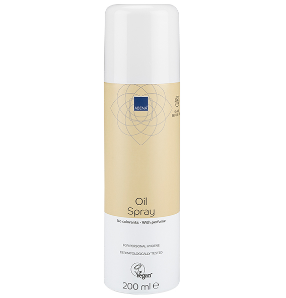 Το ABENA oil spray είναι ένα ελαφρύ, μη λιπαρό σπρέι που περιέχει ένα μείγμα φυσικών ελαίων, όπως έλαιο jojoba και βιταμίνη Ε.